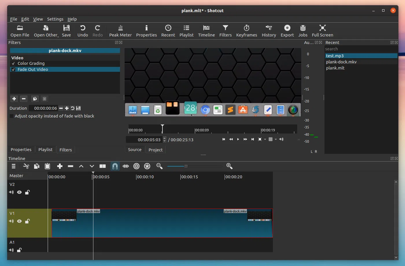 Shotcut é um editor de vídeo gratuito para Linux, macOS e Windows. Inclui uma ampla gama de funções, desde recursos de edição como aparar, cortar, copiar e colar, a efeitos de vídeo ou recursos de áudio como medidor de pico, volume, forma de onda, controle de volume, filtros de áudio e assim por diante.